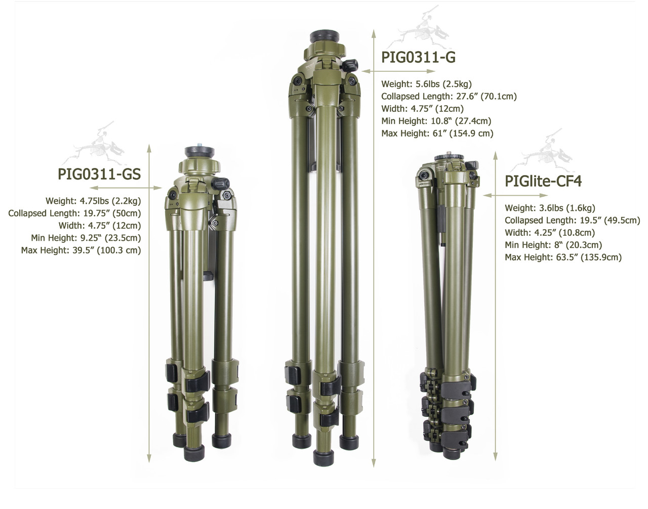 *PIG0311-G shooting tripod is sold as the tripod legs alone. A Saddle or ball head would be an additional purchase.*