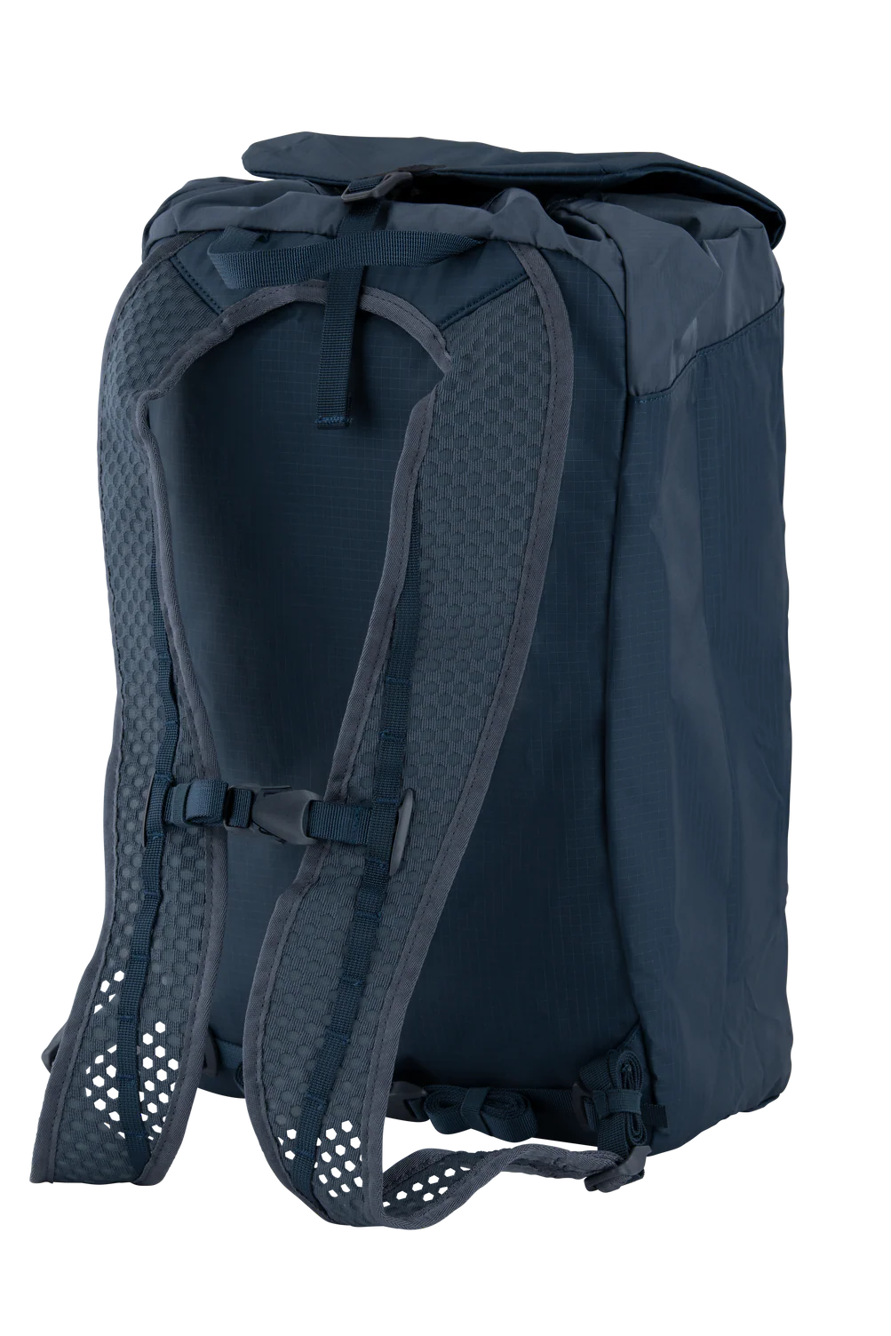 VERTX GO PACK Features: Adjustable sternum strap and removable waist belt for added security and stability Contoured shoulder pads evenly distribute weight for increased comfort and durability Top grab handle for quick deployment in grab-and-go scenarios Top flap folds over and features a secondary G-hook closure to keep gear secure and accommodate larger loadouts Outer shove-it pouch can quickly be loaded with a jacket or towel to prevent printing Spring-loaded closure system releases drawstring with the ease of a pull for fast access to gear Lightweight fabric and packable design allows for quick storage on the go